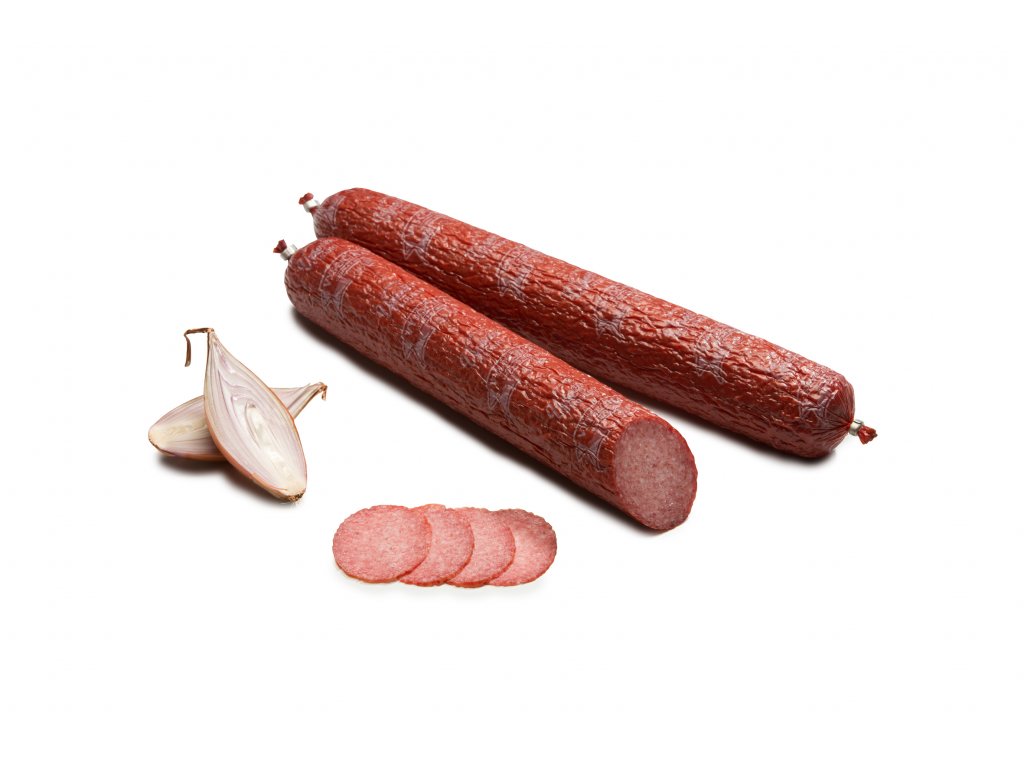 Složení: Vepřové maso, vepřové sádlo, hovězí maso, upravené vepřové kůže (vepřové kůže, škrob, stabilizátor E 450, regulátor kyselosti E 338), stabilizátor E 326, jedlá sůl, konzervant E 250,